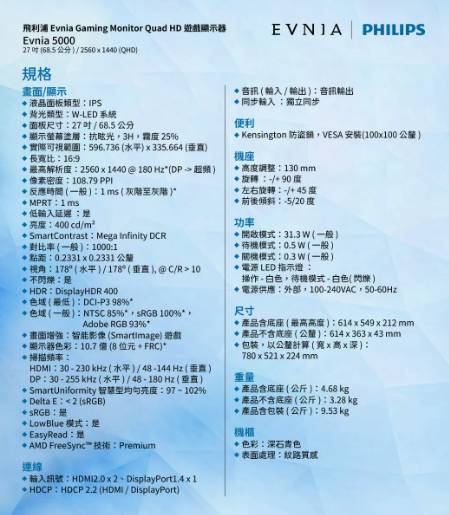 保固期限 3年 保固種類 原廠保固 類型 LCD 顯示器螢幕大小 26~28吋 面板種類 IPS 螢幕接口 D…