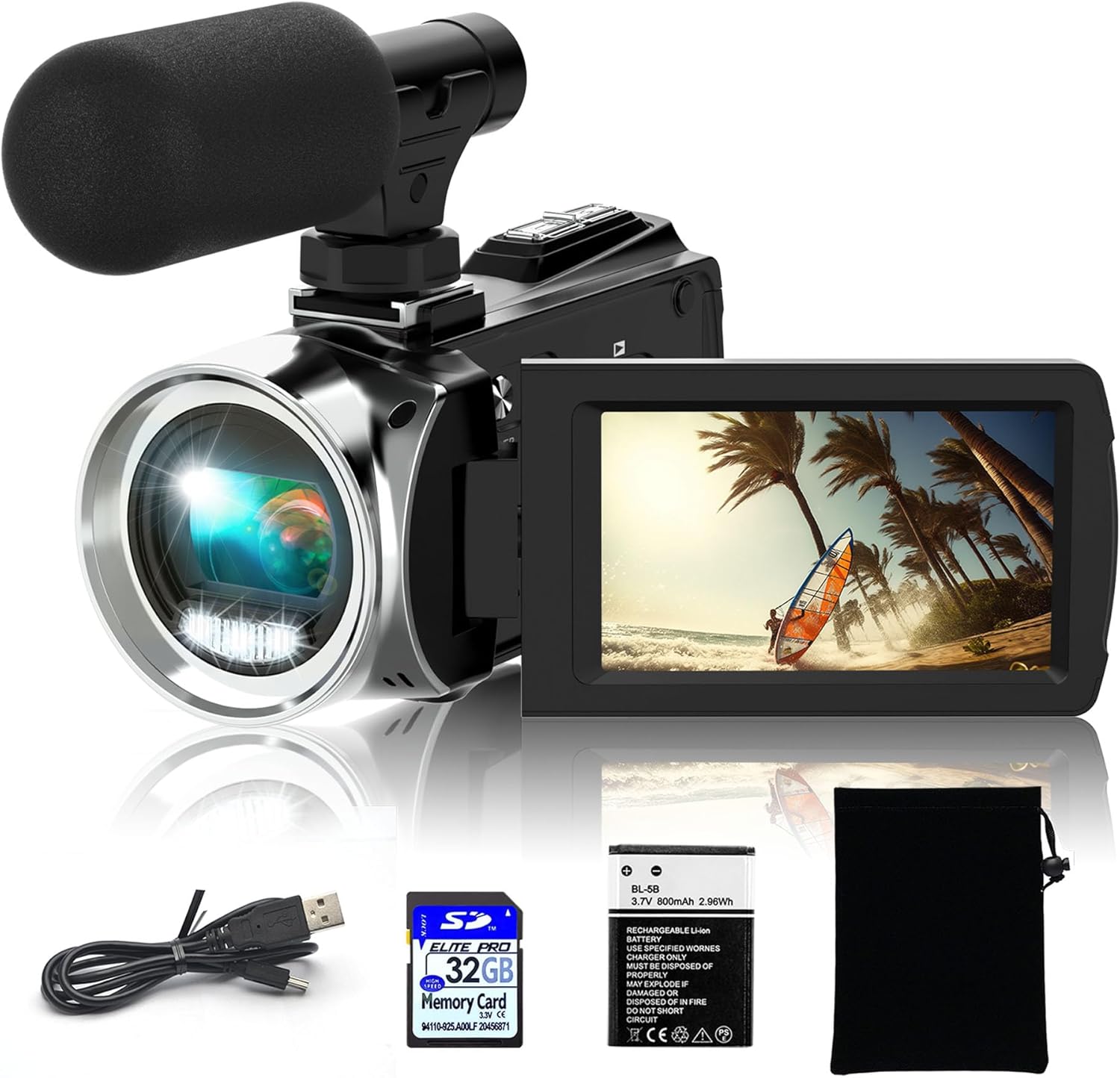 • 🎥【外接麥克風和長時間錄製】這款錄像機相機配有外部麥克風。 它可以拾取距離遠 0-3 公尺的聲音。 這款視頻博客相機配有 1050mAh 電池,充滿電的電池可使用 60-90 分鐘。 這款 youtube 攝影機可使用行動電源或 PC 充電;支援充電時錄製。 因此,不用擔心錄製時耗盡電量。 ​ 此部落格相機包含 32G SD 卡(最大至 256GB),請在使用前格式化 SD 卡。